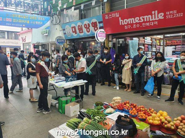 이들은 황지자유시장에서 지역경제 살리기 캠페인 및 전통시장 장보기 행사를 진행한 뒤 관내 식당에 들러 각자 내기 오찬을 하며 태백시 지역경제 활성화에 힘을 보탰다.