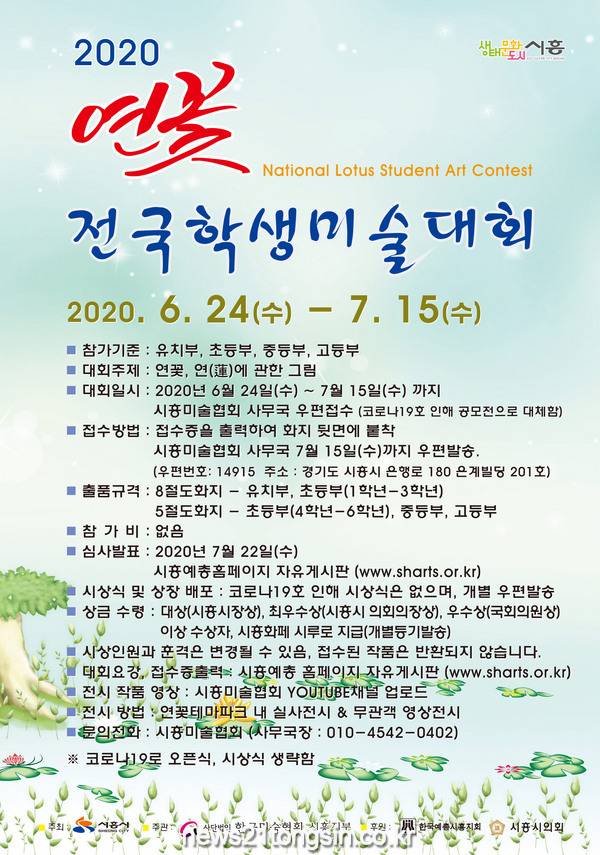 한국미술협회 시흥지부는 전국의 유치부와 초ㆍ중ㆍ고등부를 대상으로 ‘2020 연꽃 전국학생미술대회’를 개최한다.