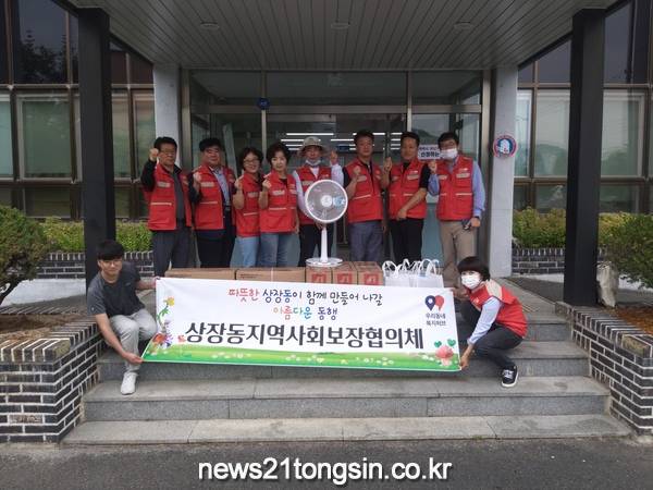 상장동 지역사회보장협의체(공공위원장 김진철, 민간위원장 강영찬)는 지난 27일 본격적인 혹서기를 대비해 관내 독거노인 등 취약계층 가구에 선풍기 나눔 봉사를 진행했다.