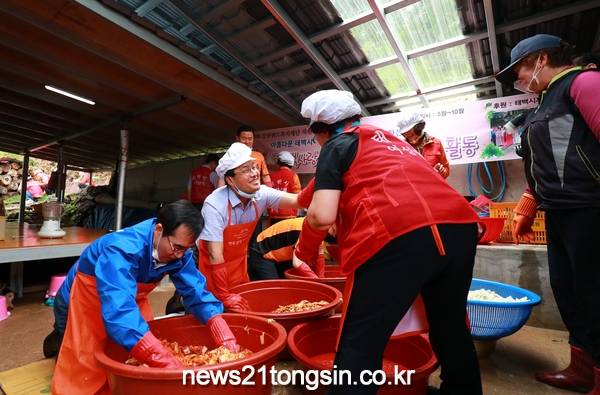 류태호 태백시장은 “그동안 코로나19 감염 예방과 확산 방지를 위해 여러모로 애써주셨는데, 오늘은 또 이렇게 비가 오는 날씨 속에서도 이웃에게 김치를 나누기 위해 귀한 자리를 마련해 주심에 감사드린다.”며, “앞으로도 지역의 어려운 이웃에게 빛과 소금 같은 역할을 해주시기 바란다.”고 말했다.