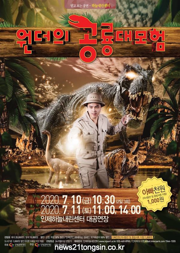 인제군문화재단이 7월부터 아동뮤지컬_<</span>원더의 공룡 대모험>을 시작으로 코로나19로 중단했던 기획공연을 재개한다.