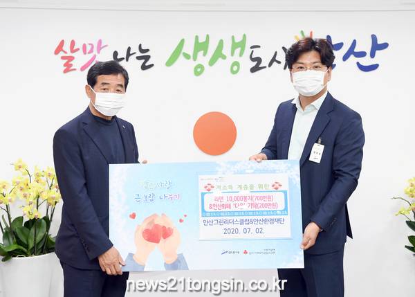 이날 시장실에 진행된 전달식은 윤화섭 안산시장을 비롯해 류경원 안산그린리더스클럽 회장, 전준호 안산환경재단 대표이사 등 관계자가 참석해 코로나19 확산에 따른 국가적 위기상황 극복을 위한 나눔 실천과 시 대응에 대한 논의를 나눴다.