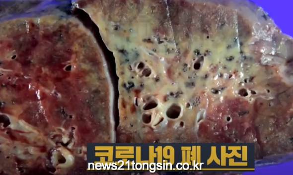 ▲ 사진=KBS 뉴스 캡쳐코로나19 중증환자에서 적출한 폐 조직 사진이 공개됐다.