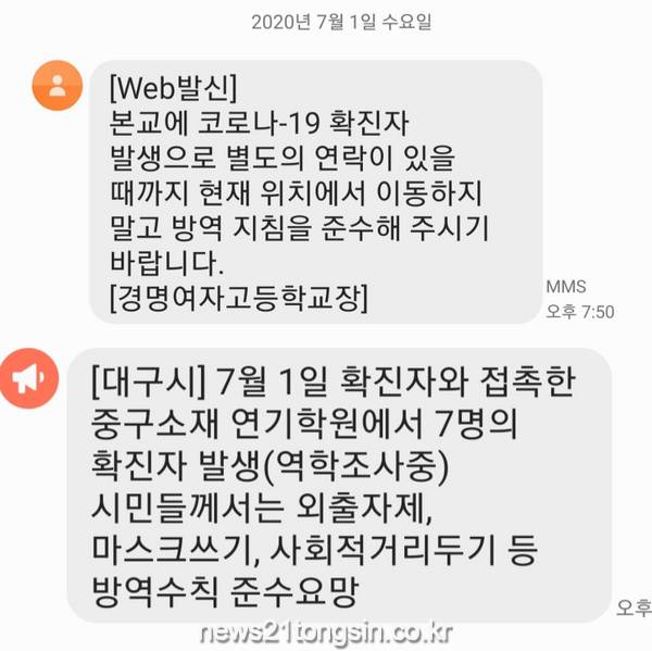 (대구=뉴스21통신) 유재원기자 = 대구에서 7. 2.(목) 오후 코로나19 확진자가 추가로 나오면서 긴박한 상황이 펼쳐지고 있다.