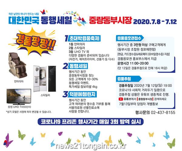 그리고 사회적 거리두기의 일환으로 경품추첨 행사를 현장이 아닌 유튜브 생중계를 통해 진행하며 참여고객은 유튜브 <중랑동부시장>채널을 통해 가정에서 경품추첨 상황을 실시간 시청할 수 있다.