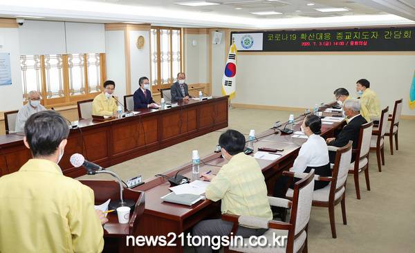허태정 시장은 3일 오후 2시 시청 중회의실에서 지역의 종교계 지도자들과 긴급 대책회의를 갖고 코로나19 확산을 막기 위한 방안을 논의하며 종교계의 적극적인 협력을 당부했다.
