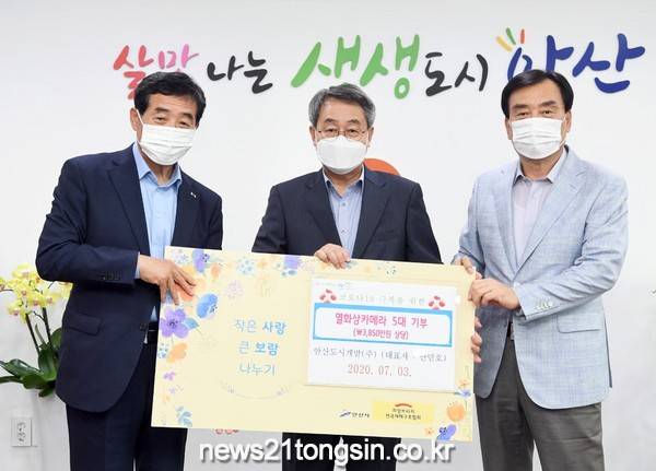 특히 코로나19가 한창 맹위를 떨치던 지난 3월초 관내 다자녀 가정과 아동시설 입소자들을 위해 5천만 원 상당의 손소독제 3만개를 기부한데 이어 두 번째 기탁을 위해 마련된 열화상카메라 5대는 시민들의 지속적인 관심과 사랑에 보답하고 코로나19 극복에 힘을 보태고자 안산도시개발㈜ 대표이사의 자발적 급여반납으로 마련된 것이어서 가치가 더욱 빛났다.