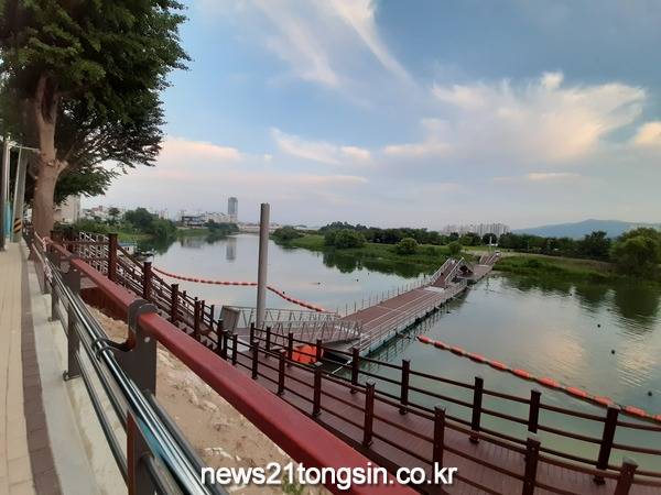 양평군(군수 정동균)은 양강섬 인도교(부교)조성공사를 완료하고 2020년 7월 7일 개통한다고 밝혔다.