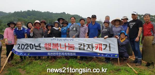 양평군 옥천면에서 주민자치위원회와 신복 1리 마을 주민들이 이웃 돕기의 일환으로 감자캐기 작업을 실시했다.