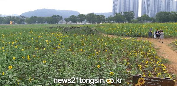 시는 최근 사회적 거리두기 여파로 가족과 함께 잠시 휴식을 취할 공간을 찾기 어려워지면서 인근 아파튼 단지 등과 어우러져 넓은 지역에 다양한 종류의 해바라기와 코스모스가 일제히 피어난 이곳을 찾는 방문객들은 계속 늘 것으로 전망하고 있다.