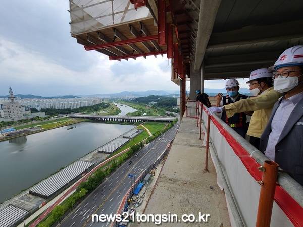 먼저, 시는 신세계 사이언스 콤플렉스 공사현장과 홍도과선교 공사현장 등 대형 건축‧도로건설 현장을 찾아 폭우와 강풍 등에 대한 대비태세를 점검했다.