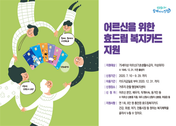 인천시(박남춘 시장)가 전국 최초로 어르신을 위한 효드림 복지카드를 도입, 오는 7월 10일부터는 신청을 받아 지급한다고 밝혔다.