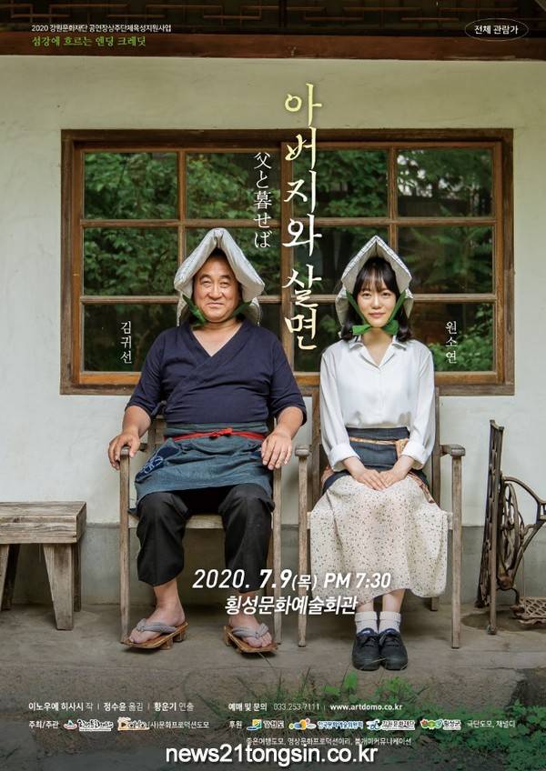 (재)횡성문화재단(이사장 : 채용식)은 오는 7월 9일(목) 저녁7시 30분 횡성문화예술회관 대공연장에서 “2020 공연장상주단체 육성지원사업”의 일환으로 진행되는 연극 “아버지와 살면” 공연을 무료로 진행한다.