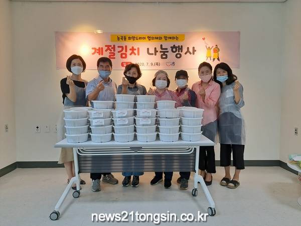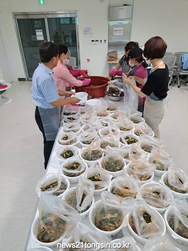 이날 정성껏 준비한 열무김치는 관내 50여 세대에 전달했다. 아울러 관내 중증장애인 재활시설 내음공간의 문종선 대표가 기부한 감자도 함께 전달하며 코로나19와 더위로 어려움을 겪고 있는 가구에게 따뜻한 마음을 나눴다.