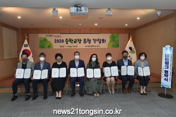 (대구=뉴스21통신) 유재원기자 = 대구시 남구청은 지난 10일 관내 7개교 중학교장과 간담회 및 네트워크 협약식를 가졌다.