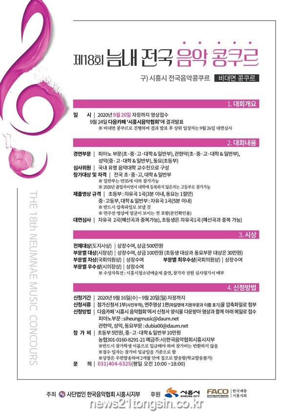 시흥시 음악협회가 제 18회 늠내 전국 음악 콩쿠르(구 시흥시 전국음악콩쿠르&동요대회)를 개최한다.