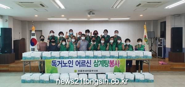 횡성군 안흥면 새마을부녀회(회장 황근순)는 오는 13일 관내 80명의 독거 노인들이 건강하게 여름을 날 수 있도록 삼계탕을 만들어 전달하는 행사를 가졌다.