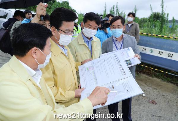 허태정 시장은 이날 목척교를 방문해 대전천 수위 상승 현장을 점검하고 철저한 대비태세를 주문한 뒤 한샘대교 공사현장을 방문해 안전대책을 점검했다.