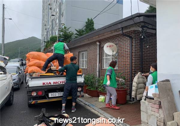 이종호, 김종규 팀장과 봉사단원 15명은 오물과 음식물 쓰레기 등으로 뒤덮인 안방과 부엌과 거실 통로, 화장실 등을 모두 치운 뒤 방역까지 실시했다.