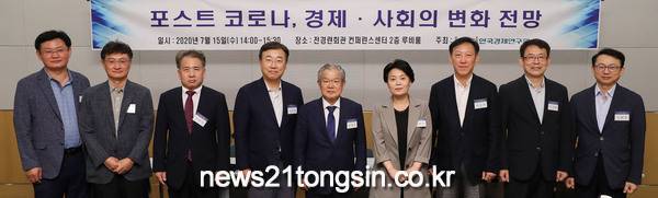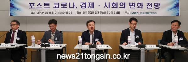 [경기서부-뉴스21통신] 추현욱 기자 =한국경제연구원(이하 한경연)은 7월 15일(수) 전경련회관 컨퍼런스센터에서 “포스트 코로나, 경제·사회의 변화 전망” 세미나를 개최했다. 권태신 한경연 원장은 개회사를 통해 “탈세계화는 한국경제에 상당한 리스크가 될 것이고, 정부의 영향력이 커진다면 창의적 시장경제의 부재로 인한 성장잠재력 훼손이 불가피하다”면서, “중국에 대한 의존도를 줄임과 동시에 ‘작은 정부-큰 시장’이라는 자유시장경제의 기반을 공고히 해야 한다”고 강조했다.