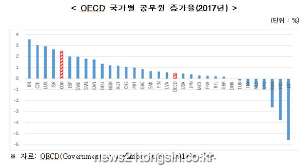 또한, 우리나라의 공무원 수 증가율이 OECD 국가 가운데 5위를 기록하는 등 높은 증가세를 기록하고 있을 뿐만 아니라 공무원 수 증가는 노동시장에도 부정적인 영향을 미치는 것으로 나타난 만큼 코로나19 발생 이후 큰 정부 기조 하에서 공무원 수 증가는 경계할 필요가 있다고 설명했다.