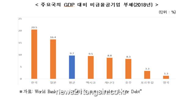 비금융공기업 부채 GDP 대비 20.5%, OECD 국가들 중 가장 높아