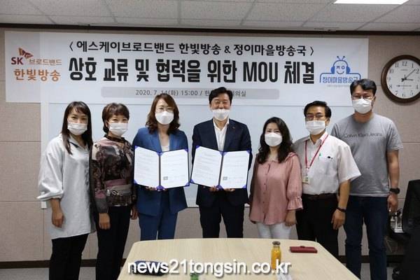 정왕2동장(홍성림)은 정이마을방송국 미디어센터(운영자 이정숙)와 SK브로드밴드 한빛방송(이하 “한빛방송”이라 한다)이 7월 14일 업무협약서를 체결했다고 밝혔다.