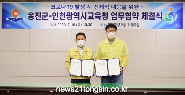 인천광역시교육청(교육감 도성훈)은 16일 인천 옹진군청과 코로나19 발생 시 공동 대응을 위한 업무 협약을 체결하였다. 이로써 관내 10개 군·구와의 협약 체결이 모두 완료되었다.