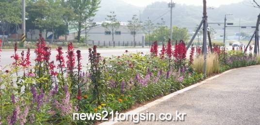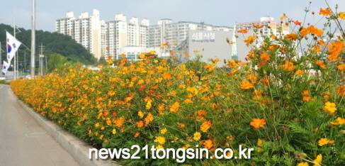 또한 지난 봄 마유로와 시청로에 파종한 황화코스모스가 개화시기를 맞아 활짝 피어나 운전자와 보행자들을 맞고 있다.