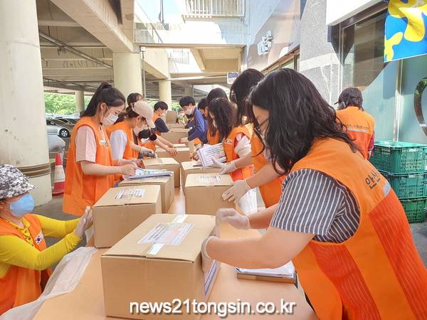 참가자들은 코로나19 확산방지를 위해 마스크 착용 등 개인위생 수칙을 준수하며 비대면으로 안전하게 행사를 진행, 50여명의 자원봉사자들이 2개 조로 나눠 꾸러미 포장은 물론 차량봉사를 통해 각 가정 문 앞까지 배달했다.