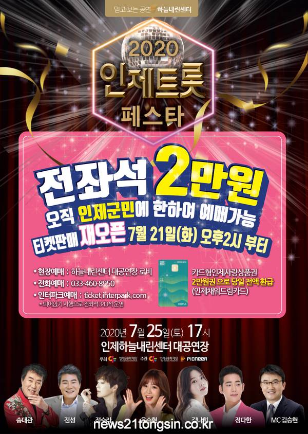 인제에서 믿고 보는 공연으로 기획된‘2020 인제 트롯 페스타’공연이 티켓을 재 오픈한다.