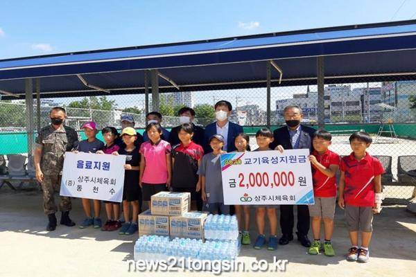 학생들이 훈련하는 모습을 잠시 지켜본 상주시 체육회 김성환 회장은 “학생들이 더운 날씨에 지치지 않도록 음료, 간식, 용품이 잘 지원되어 장차 자기 자신과 상주를 빛낼 수 있는 선수로 성장하기를 바란다.”며 함께 “파이팅!”을 외치고 전달식을 마쳤다.