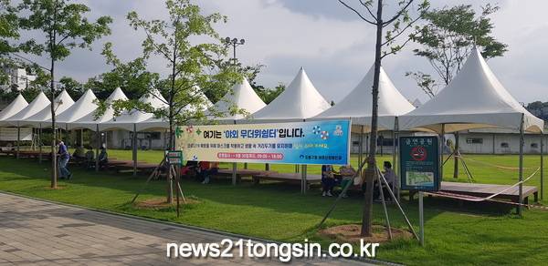 특히, 올해는 코로나19 예방 수칙인 생활 속 거리두기를 감안해 교량하부 및 공원 내 정자 등 9개소에 야외 무더위 쉼터를 마련했다.