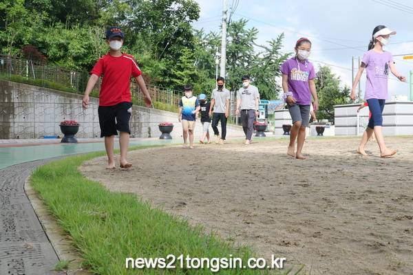 이와 더불어 평소 기초기본 교육을 중시하며 ‘보문산 자락의 행복한 느림보학교’를 표방해온 대신초는 7월부터 본격적인 ‘마음 튼튼 몸 튼튼 맨발 걷기’ 프로젝트를 시작하였다. 예전의 다양한 교육활동을 실현할 수 없는 코로나19 상황에서 메말라가는 학생들의 정서와 움직임 없는 수업으로 지친 몸의 안정적 지원을 위해 다 같이 고민하였고 수많은 협의 끝에 실현된 프로젝트이다.