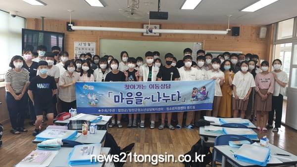 합천군 청소년상담복지센터, 청소년지원센터 꿈드림에서는 지난 20일 초계중학교 전교생을 대상으로 코로나19의 장기화 및 재확산 사태로 코로나 블루(corona blue, 코로나 우울감)에 시달리는 청소년들의 심리건강을 증진시키고 일상으로의 복귀를 돕고자 ‘찾아가는 이동상담 「마음을 나누다」’를 실시했다.