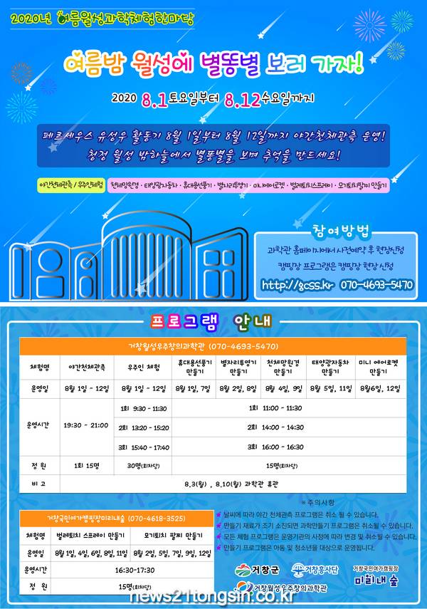 자세한 사항은 거창군 월성우주창의과학관(☎070-4693-5470)으로 문의하면 된다.
