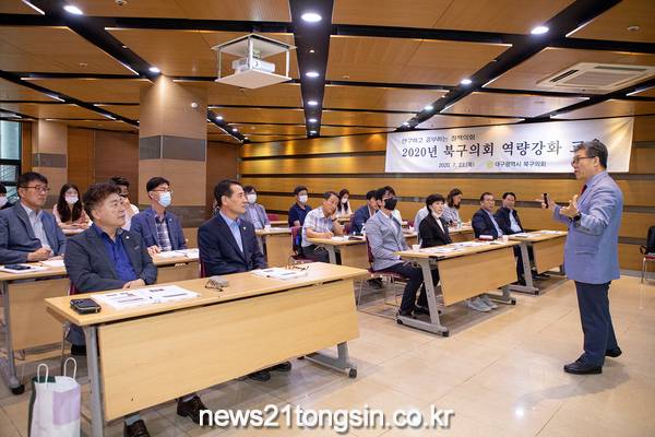(대구=뉴스21통신) 유재원기자 = 대구시 북구의회는 지난 7월 23일(목) 오전 10시 팔공산 평산아카데미 연수원에서 북구의원 및 사무국 직원 30여명을 대상으로 ‘2020년 후반기 북구의회 역량강화’교육을 진행했다.