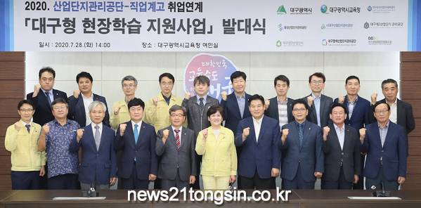 (대구=뉴스21통신) 유재원기자 = 대구시교육청은 7월 28일(화) 오후 2시, 시교육청 여민실에서 대구시 홍의락 경제부시장과 대구지역 6개 산업단지관리공단 및 대구경북금형공업협동조합 이사장 등이 참석한 가운데 ‘2020 산업단지공단-직업계고 취업연계「대구형 현장학습 지원사업」’발대식을 가졌다.