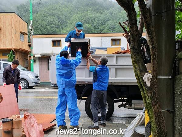 20여 명이 청결한 주거환경 조성을 위해 집안 곳곳에 쌓인 약 6톤의 묵은 쓰레기와 각종 폐생활용품 등을 처리하며 구슬땀을 흘렸다.