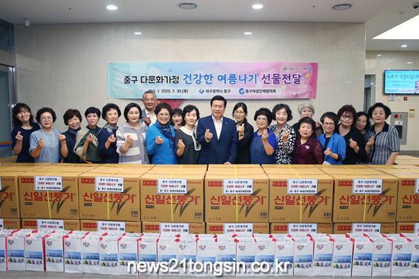 (대구=뉴스21통신) 김병철 기자= 대구 중구청은 30일 중구 여성단체협의회 주관으로 관내 다문화 가정 40가구에 ‘건강한 여름나기‘ 선물을 전달했다.