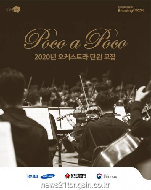 장애인먼저실천운동본부(이수성 이사장)와 삼성화재(최영무 사장), 국립특수교육원(김은숙 원장)이 공동으로 주최하고 교육부가 후원하는 ‘뽀꼬 아 뽀꼬’ 음악회가 8월 12일(수)부터 8월 19일(수)까지 8일간 오케스트라 단원을 모집한다.