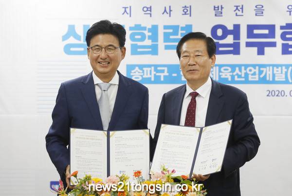 송파구(구청장 박성수)가 한국체육산업개발(주)(대표이사 김사엽, 이하 체육산업개발)과 업무협약을 체결하고 문화체육도시로 발전하기 위한 상호협력에 나선다.