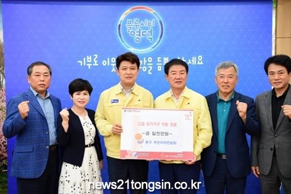 (대구=뉴스21통신) 김병철 기자= 대구 동구청과 동구 주민자치연합회는 지난 24일 영덕군에서 일어난 침수 피해의 빠른 복구에 보탬이 되고자 수재의연금 1천만원을 이희진 영덕군수에게 전달했다고 31일 밝혔다.