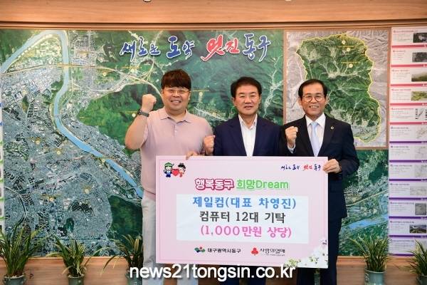 (대구=뉴스21통신) 김병철 기자= 제일컴 차영진 대표는 31일 동구청을 방문, 동구 내 저소득 청소년의 정보화 지원을 위한 컴퓨터 기탁식을 가졌다.