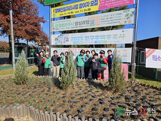 [뉴스21 통신=최병호 ]*사진출처-울산북구청북구 효문동 새마을부녀회는 19일 동 행정복지센터 입구 화단을 정비하고 겨울맞이 꽃심기 활동을 했다.