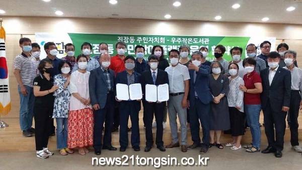이날 협약식에서 우주작은도서관은 앞으로 도서관 이용자들을 통해 의제를 발굴하고 제안하는 역할을 수행하고, 진잠동 주민자치회는 지역의 거점플랫폼으로서 제안된 의제에 대해 숙의토론의 과정을 거쳐 정책을 발굴하고 구에 제안하기로 약속했다.