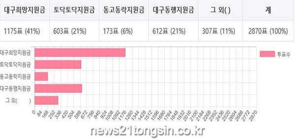 시민 설문조사를 통해 2차 생계지원금을 전 시민에게 골고루 지급하는 것이 좋겠다는 시민 의견을 확인, 2차 생계지원금의 명칭에 대한 시민선호도 조사를 실시한 결과 ‘대구희망지원금’이 가장 높은 지지를 받았다고 밝혔다.
