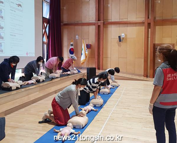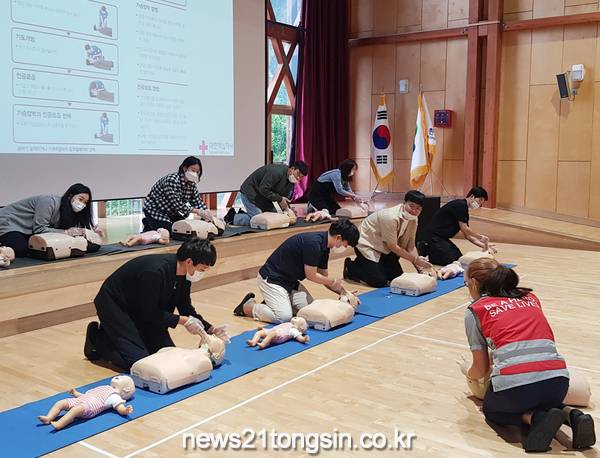 구호전문기관인 대한적십자사 강원지사와 공동으로 진행한 이번 교육에서는 응급상황 시 행동요령, 심폐소생술, 자동심장충격기(AED) 사용 방법 등 총 12시간의 실제 상황을 가정한 실습이 진행됐다.