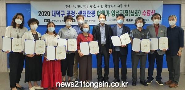 대전 대덕구(구청장 박정현)는 10일 구청에서 ‘2020년도 공정생태관광 여행가 양성 과정(심화)’의 수료식을 진행, 주민공동체 3팀에서 총 14명의 관광 분야 예비 창업자를 배출했다.