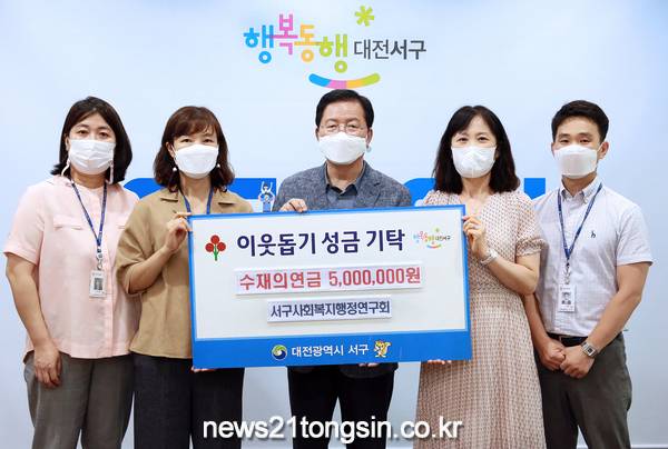 대전 서구(구청장 장종태)는 10일 청사 갑천누리실에서 대전광역시 서구사회복지행정연구회(회장 이은희)로부터 수재의연금 500만 원을 기탁받았다.